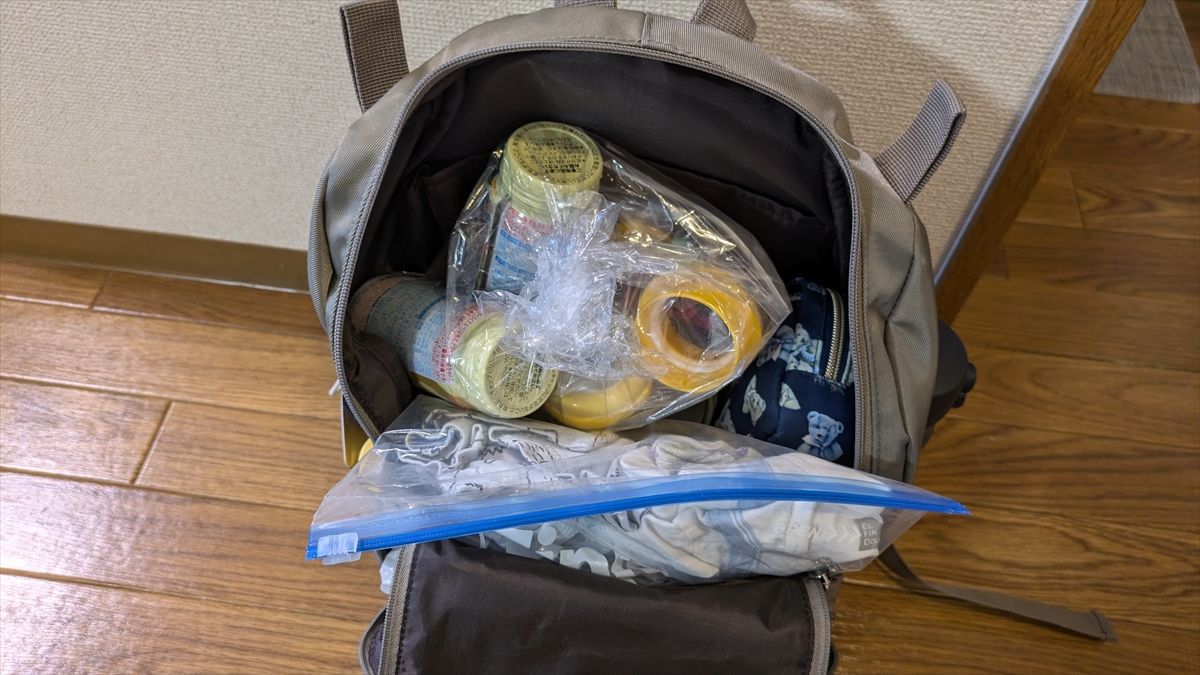 これらをリュックの中に詰めると……こう!