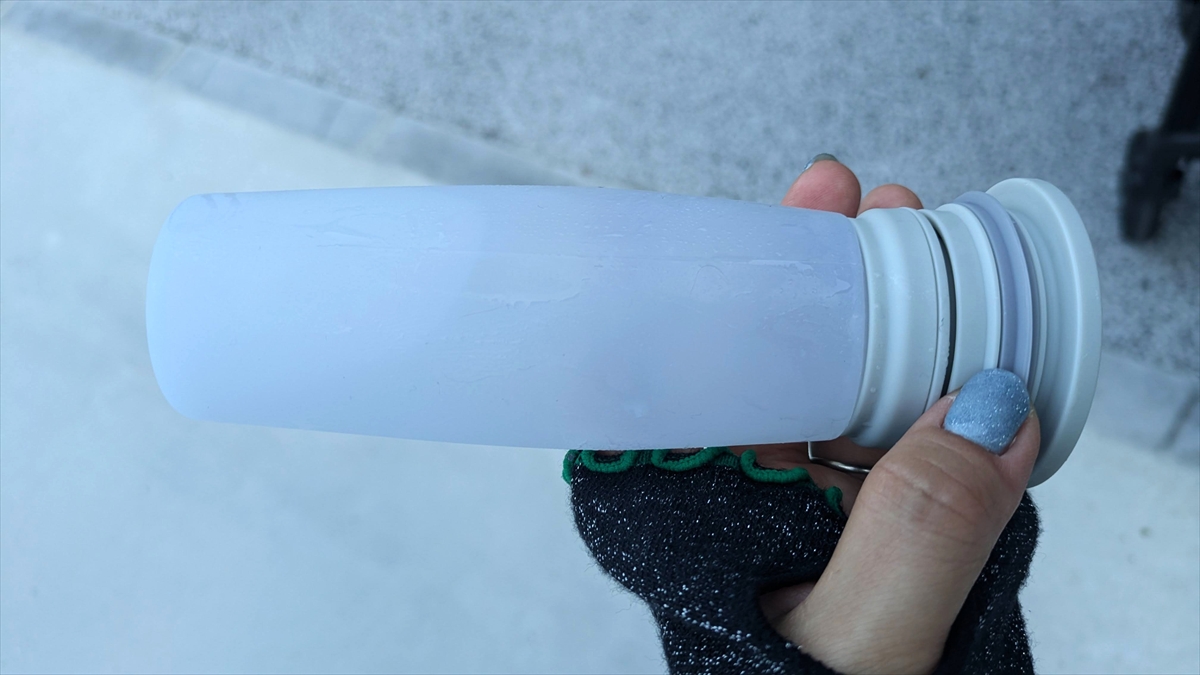 本体は水筒のような形で、中にシリコーン製のボトルが入っている。