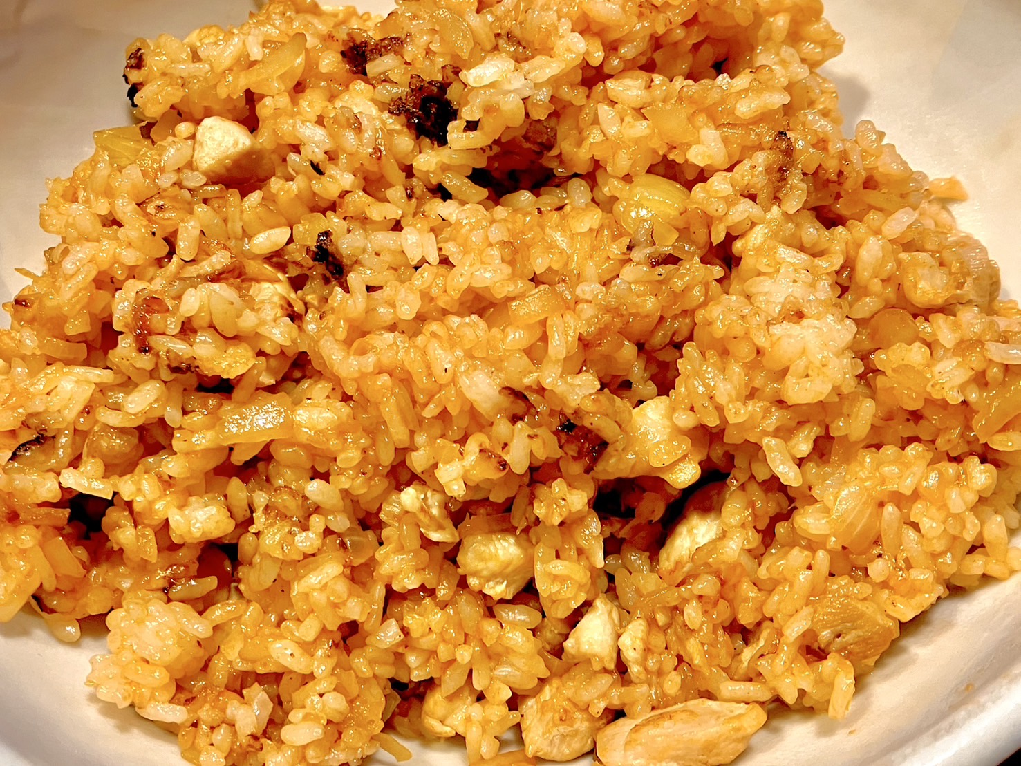 さっそくオムライスの土台であるチキンライスを製作。卵10個を支えるための土台ということで、チキンライスも大ボリュームだ。