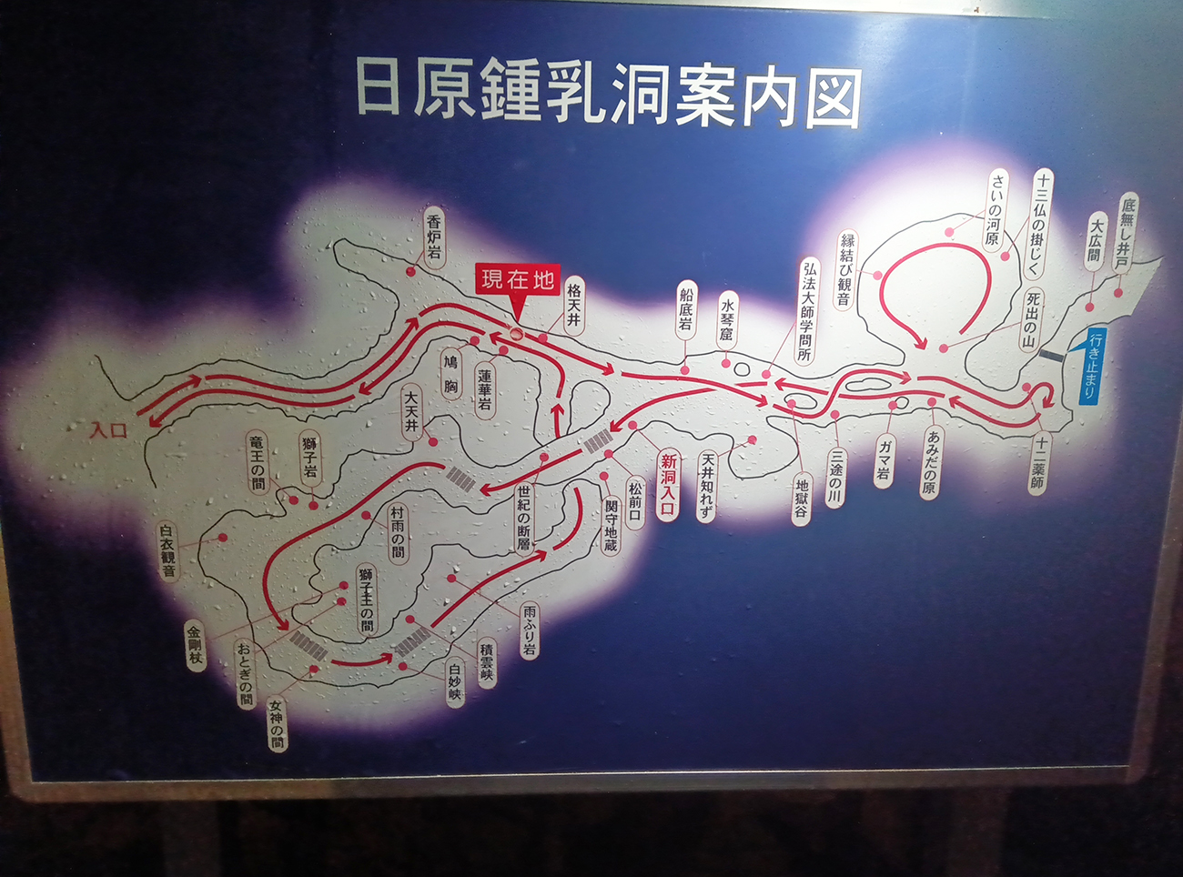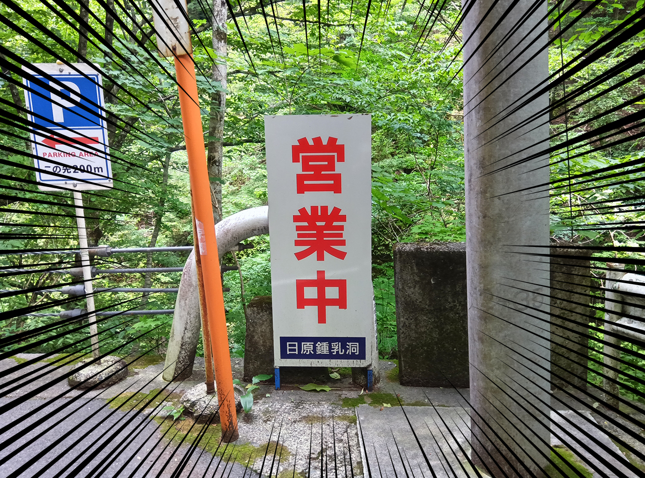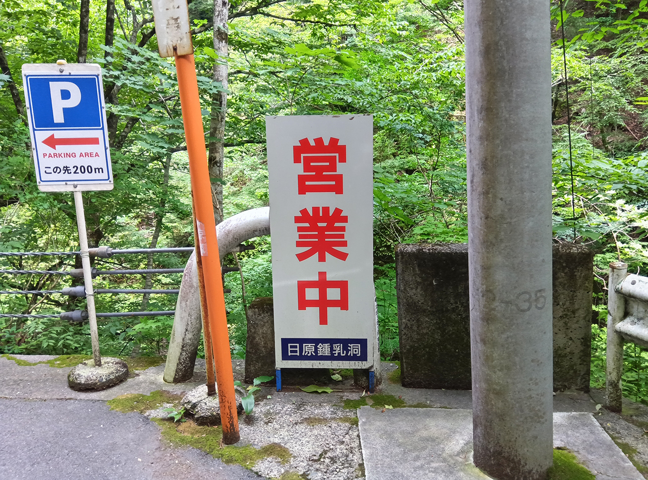 雰囲気も何もないゴシック体のフォントと絶妙なサイズ感のデザインが鍾乳洞の看板と思えない。今にも冷やし中華始めそうなレベル。だが、めちゃくちゃ安心する。全然まだ人の領域でした。人って凄い。