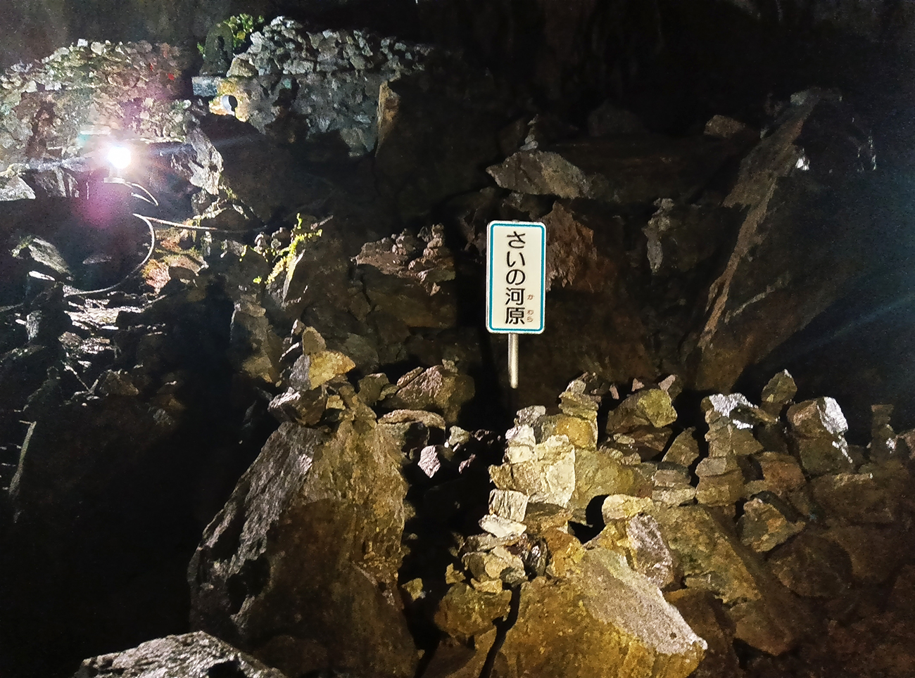 川をキラキラと照らすまぶしい太陽。遠くに聞こえるウグイスの声。緑の山は今まさに夏を迎えようとしている。しかし、そんな生き生きとした光景すら鍾乳洞の中では忘れてしまう。どことなく現世じゃない雰囲気が漂っているのだ。だから、鍾乳洞内のネーミングも「さいの河原」とか「死出の山」とかなのかもしれない。