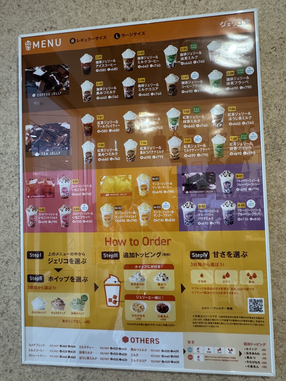 さてジェリコ堂のシステムであるが「メニューの中から好みのジェリコを選ぶ → ホイップを選ぶ → トッピングを選ぶ → 甘さを選ぶ」という流れ。これだけ聞くとタピオカ屋の進化版みたいだ。それはそうと……