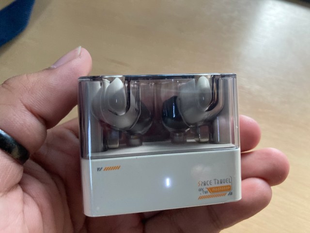 イヤホンが落ちてしまうんじゃないかと心配してしまう。けど磁石の強度は結構強め。振ってもイヤホンは落ちない。このあたりが「宇宙旅行」……?