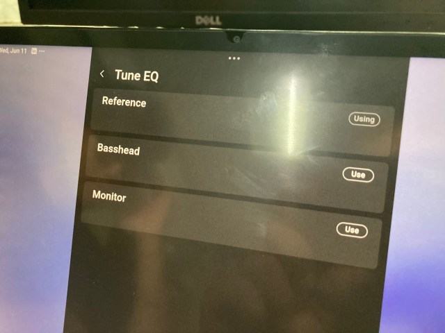 EQ設定と言ってもプリセットが3つあるだけ。普通設定の「Monitor」、低音ちょい増しの「Reference」、そして低音特化の「Basshead」。