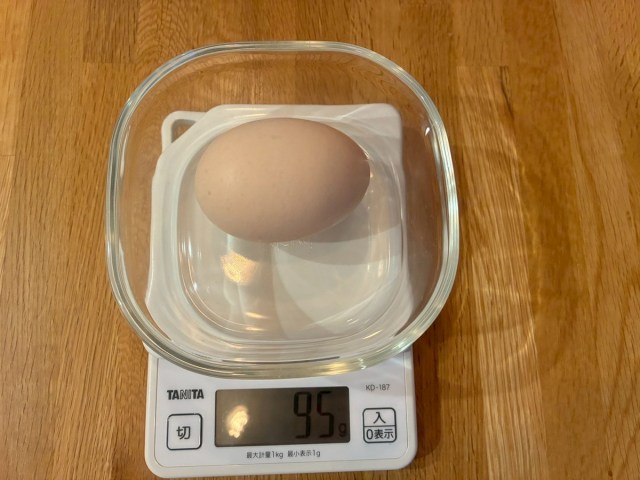 二黄卵は約100g、普通の卵は約70gと、およそ30gも多い結果となった。