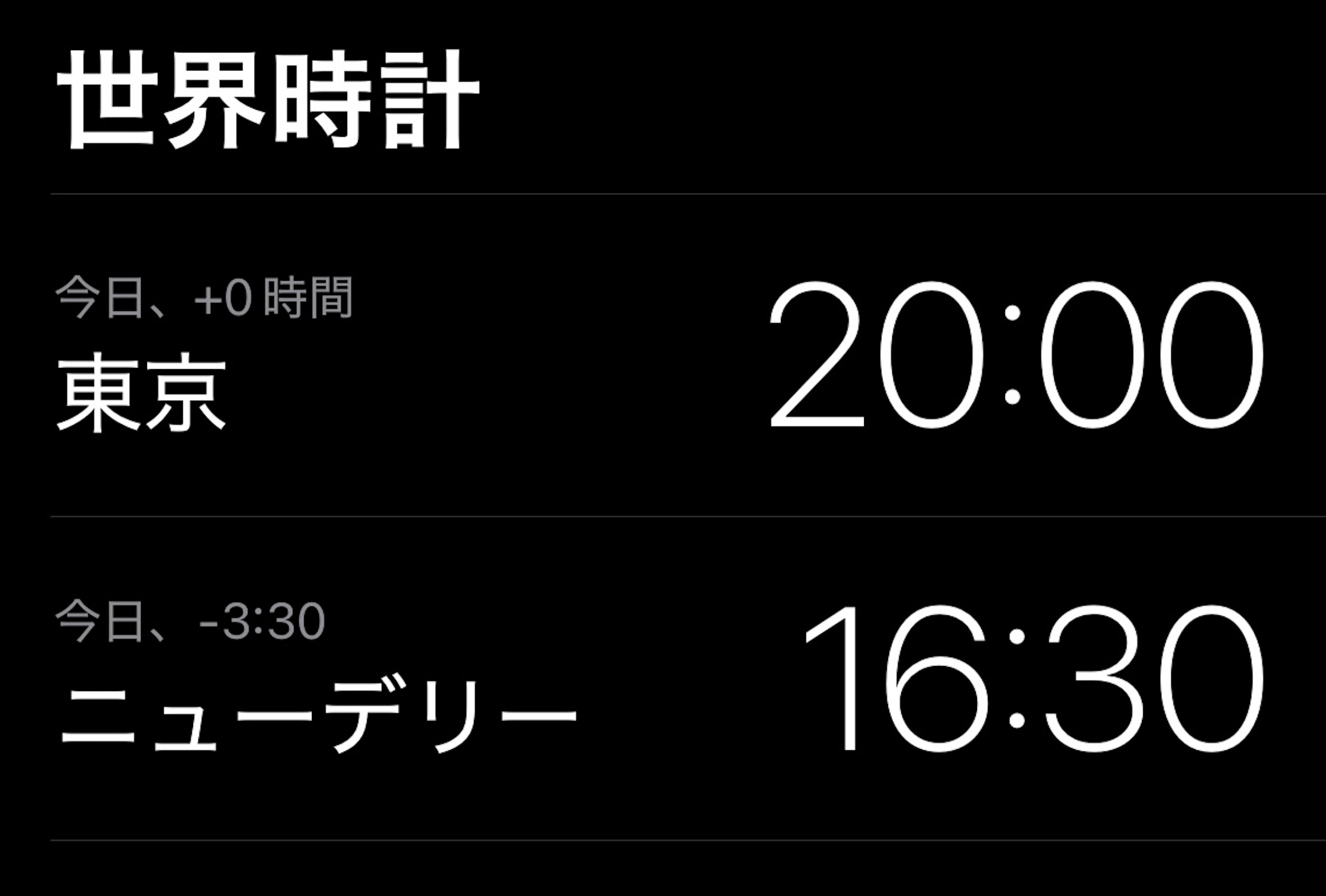 さてインドの首都デリーと東京では3時間半の時差がある。