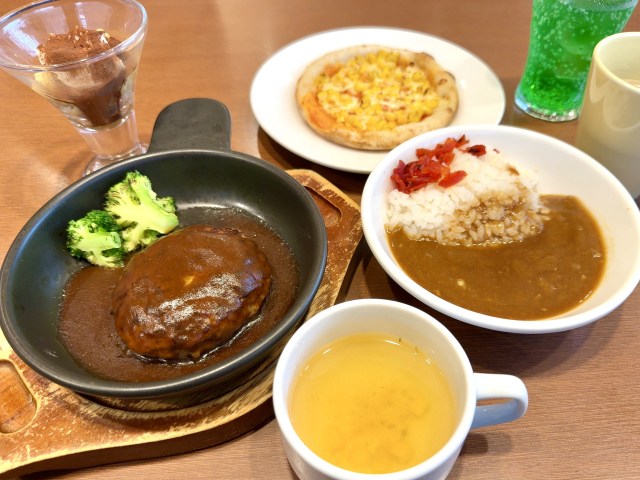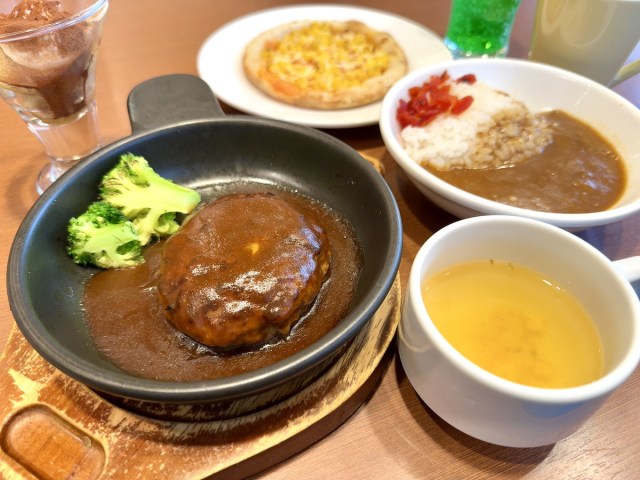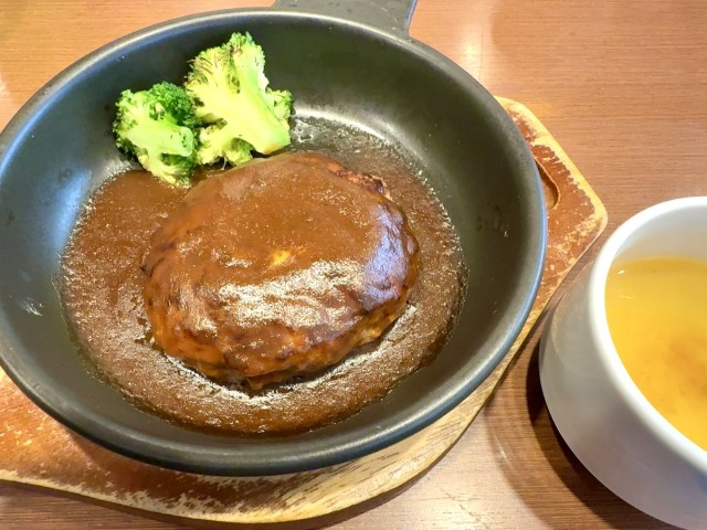 まずはグリルメニューから「FIT! ミニチーズINハンバーグ」をチョイス。ミニサイズになっているが、熱々のプレートは健在だ。
