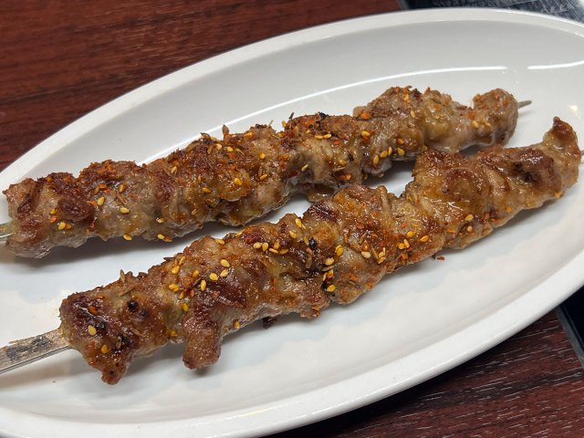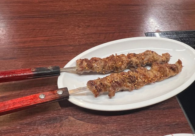 ラム肉の串焼き(1本350円で2本からの注文)。