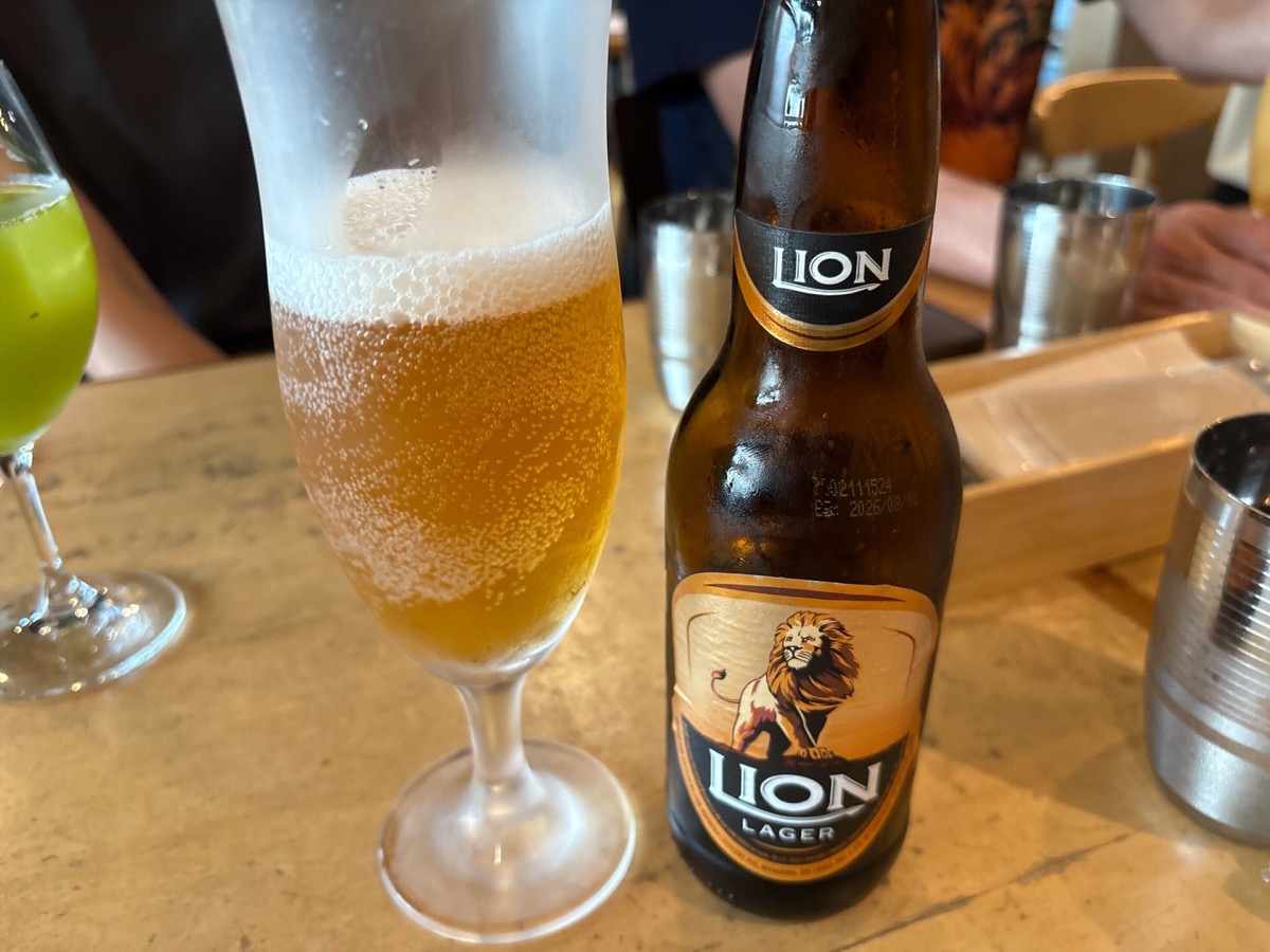 まずはスリランカのビール「ライオンラガー」で喉を湿らせる。通常は黒ビールの「スタウト」のみを扱っているというが、こちらも期間限定で海宝ちらしカレーに合うというラガービールを提供していた。