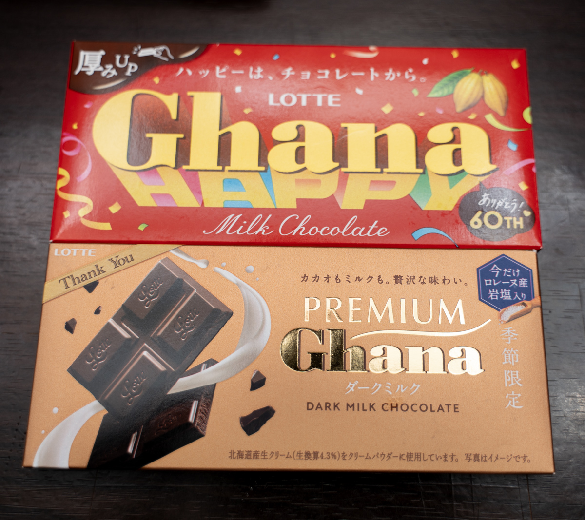 そしてロッテからは「ガーナミルク」と、なんか強そうだったので買って来た「プレミアムガーナ ダークミルク」。時にはダークサイドのパワーが必要な時もあるかもしれないしな。