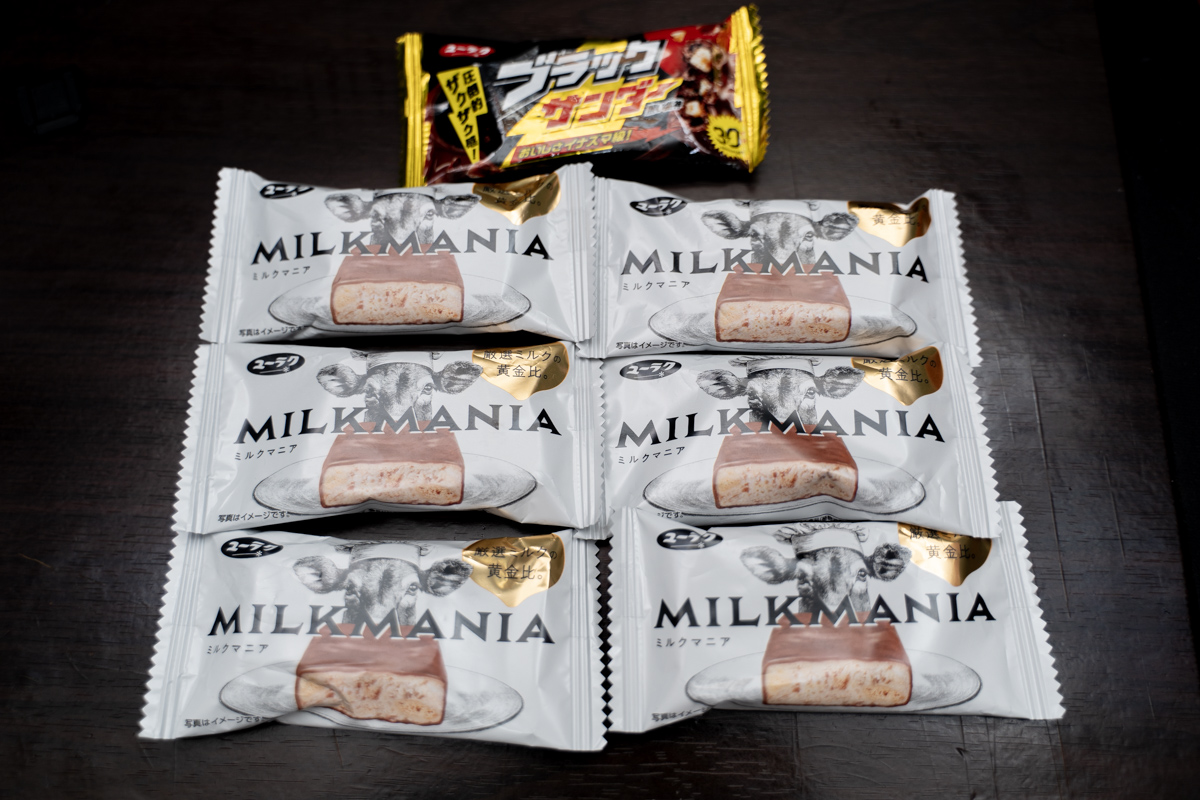 トップの写真が全てのきっかけとなった「ミルクマニア」と、参考までに買って来た「ブラックサンダー」パイセンだ。