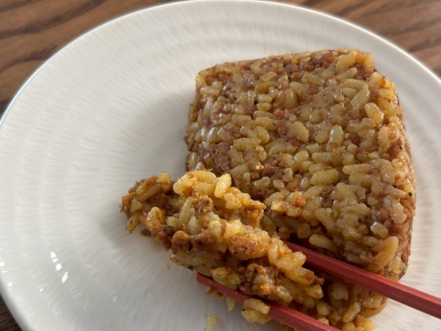 ありそうでない、カレー味のおにぎり。こちらも開けた瞬間、香りがすごい。