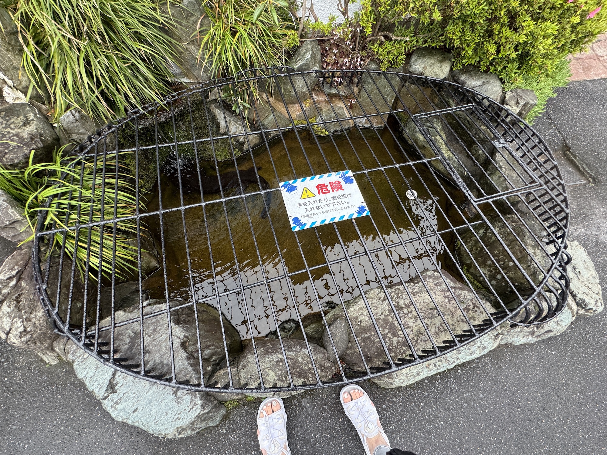塩ホル麺でお腹パンパン状態の私は、オオサンショウウオのハンバーグをテイクアウトすることにした。なおオオサンショウウオは高原亭からほど近い遊園地『ジョイフルパーク(ヒルゼン高原センター)』にて無料で見ることが可能。