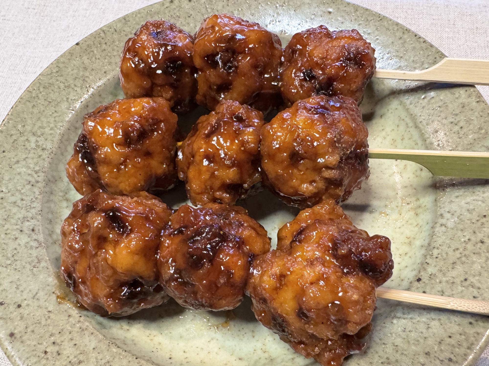 とはいえ、「めっちゃおいしい鶏ナンコツつくね」ではある。味はてりやき風味。かなり硬めなダンゴもといハンバーグであり、ナンコツのコリコリも相まって相当しっかりした歯ごたえだ。この硬さを出すの、結構苦労したんじゃないかな? オオサンショウウオ肉のポイントは “硬さ” なのだろうか?