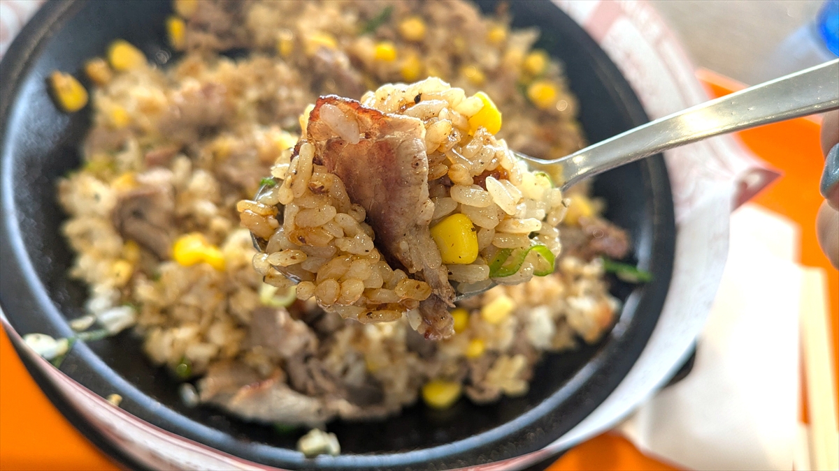 適度にパラパラとバラけておこげもでき、コーンのおかげで彩りもよく美味しそう。実は牛肉を食べるのだって久しぶりだし、ワクワクしてきたぞ!