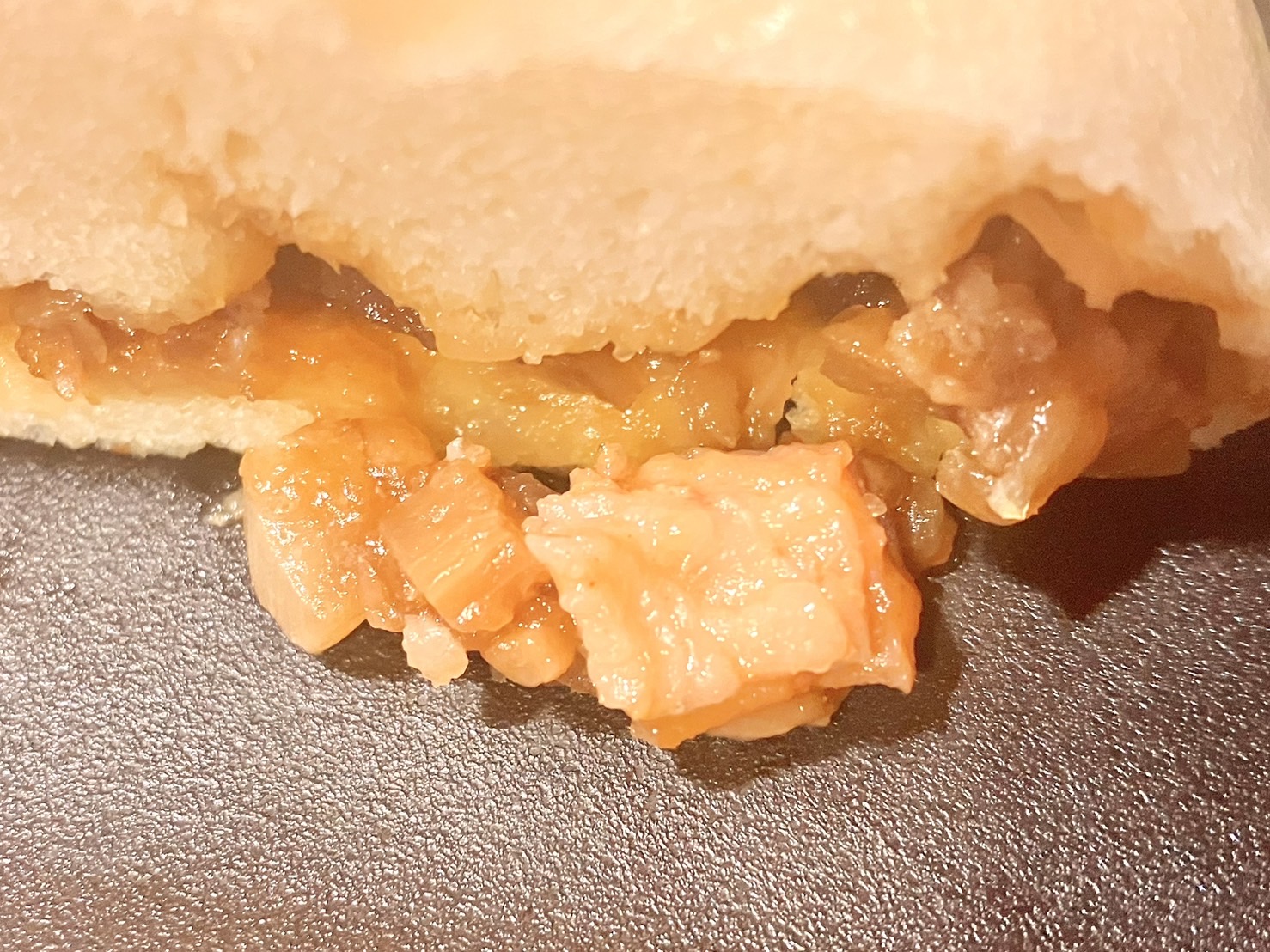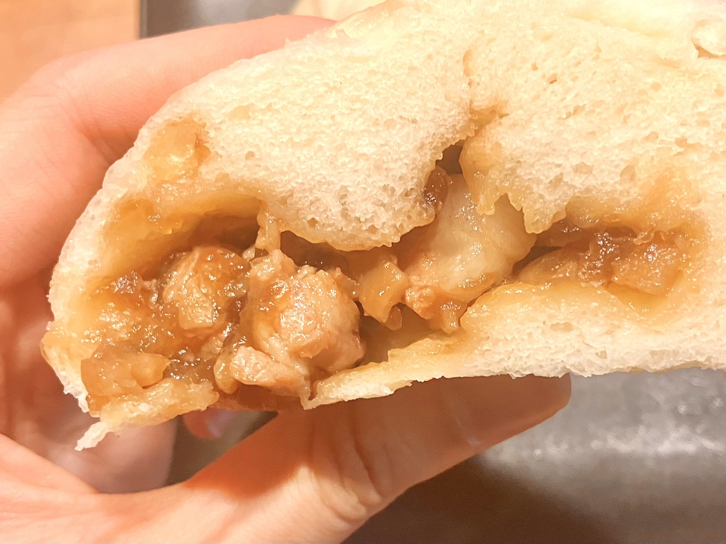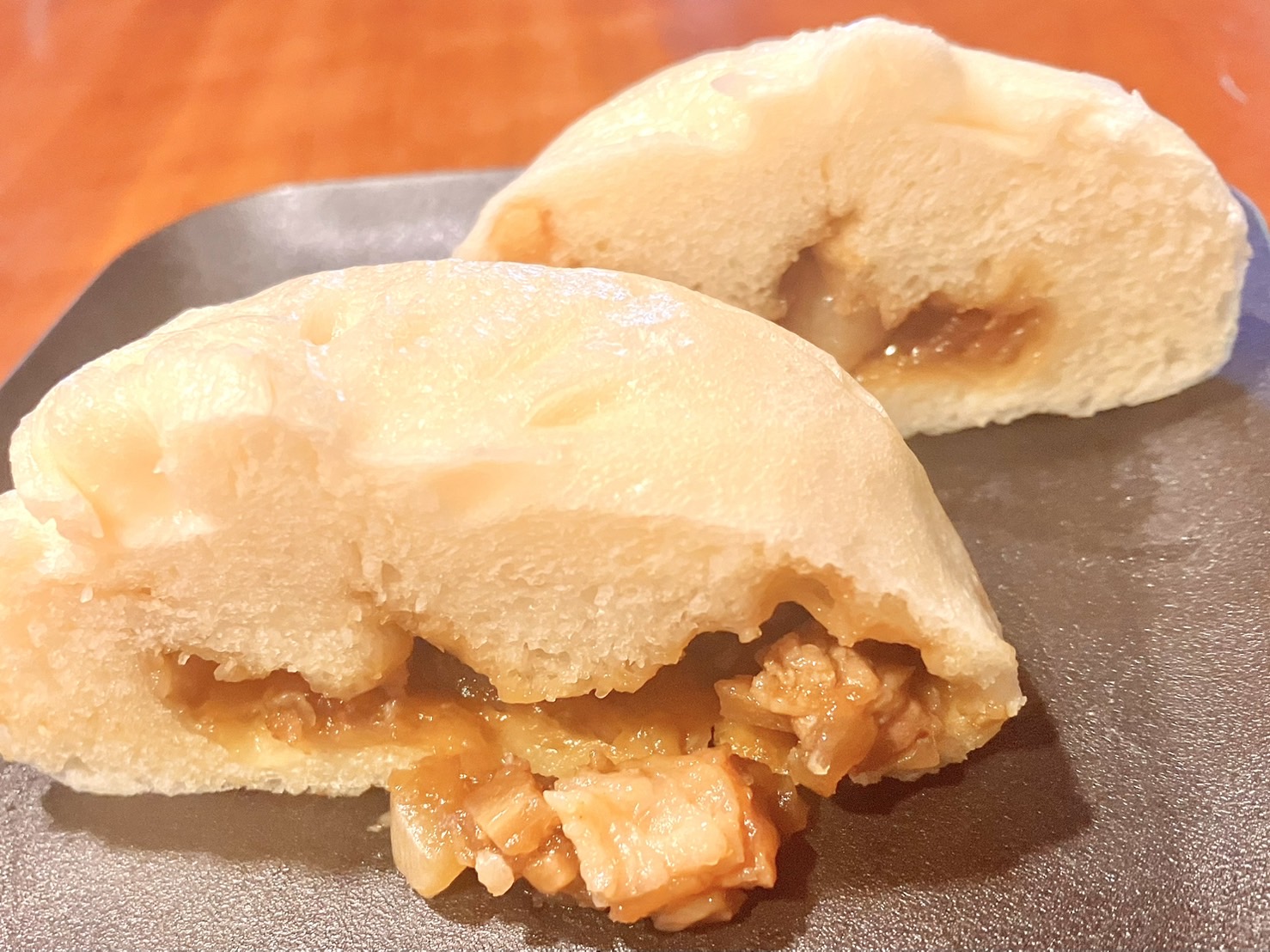 中身は全体的に甘めの味付けで、皮の優しい甘さとよく合っている。ガッツリした豚肉の味もしっかり感じて、1つ食べただけでもかなり満足できた。
