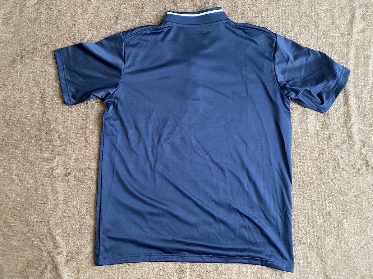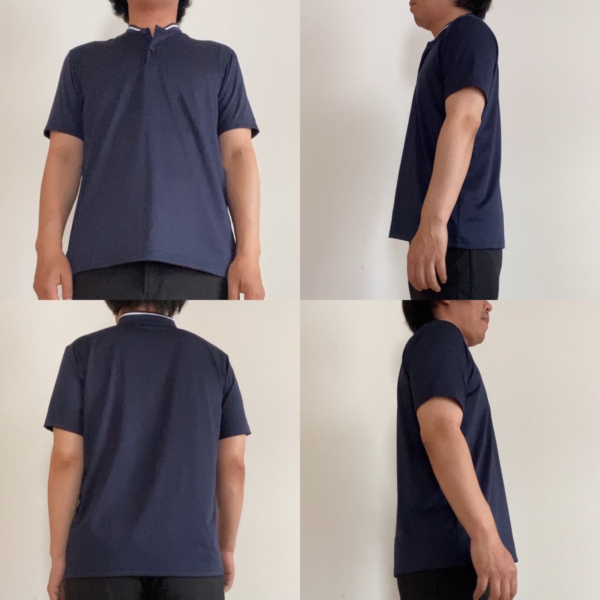 ポロシャツと書いてあるからキッチリしているのかなと思ったら、首元はこんな感じでだいぶラフなのだ。実は襟らしい襟がなく、首元に余裕があるTシャツを着ているような感覚に近い。