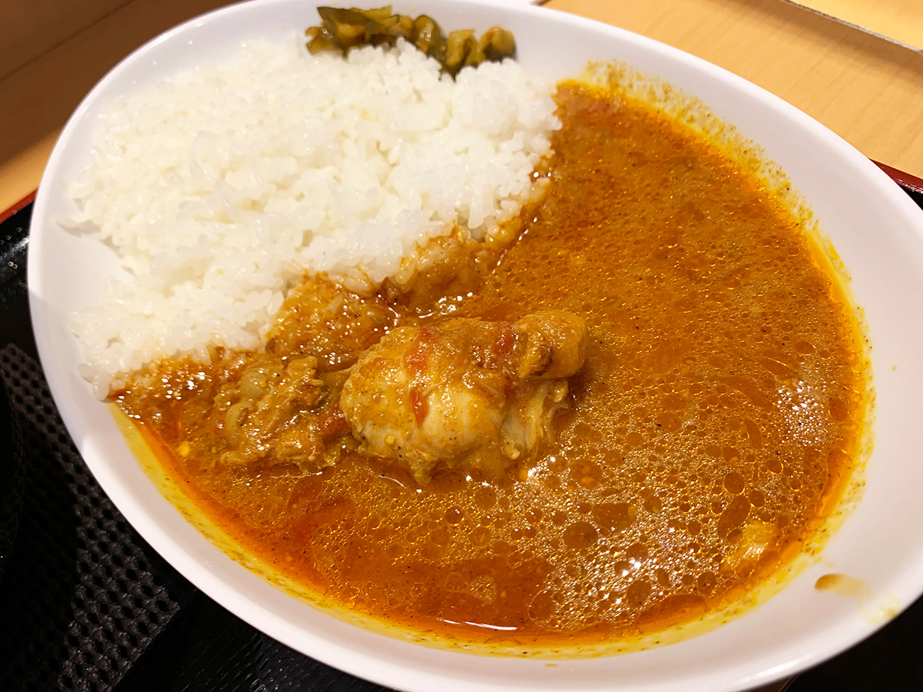 ▼サラッとしてトマトの風味が漂うけど、そばつゆも使われていて和風な「よもだそば」の本格和風インドカレー