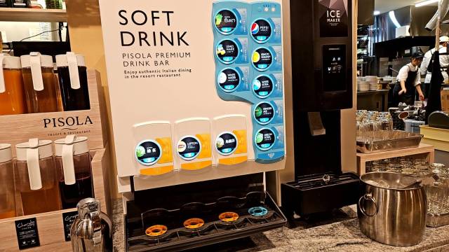 さて、まずはドリンクバーへ。一般的なラインナップかと思いきや……