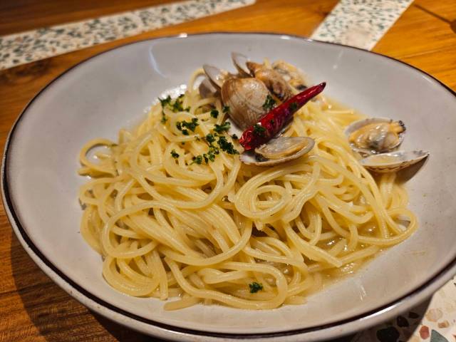 と、ここでパスタ『ボンゴレビアンコ』が到着。