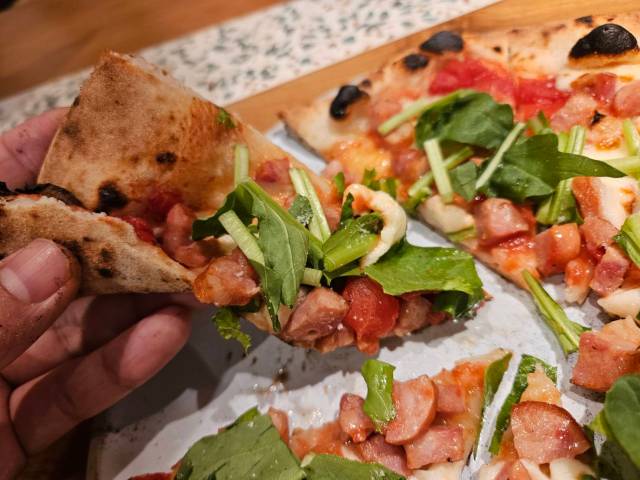 間髪入れずにピザ『自家製ハーブソーセージとルッコラ』も登場。