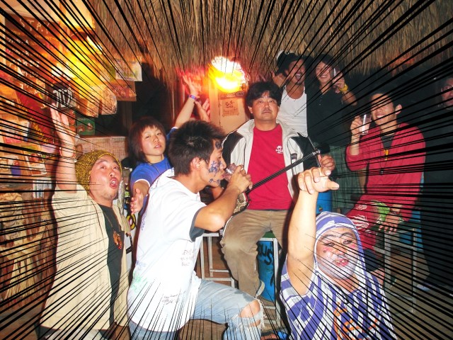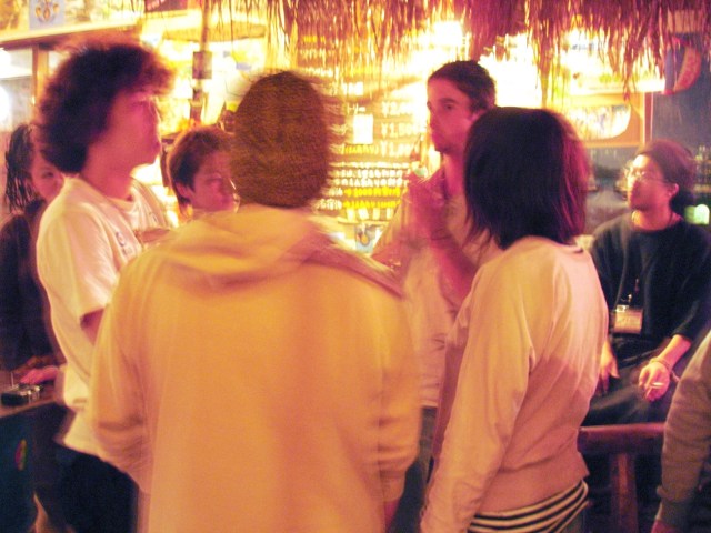 2005年の沖縄公演時には、読谷村のバーで毎週のように旅人たちと朝まで飲み明かしていた。決まった飲み仲間といえば、地元のタジーさん(30代)、米兵(20代)、戦争反対を主張するモデル風の男(20代)。