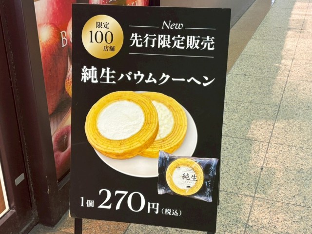 この「純生バウムクーヘン」は全国で100店舗限定で先行発売されているとのこと。