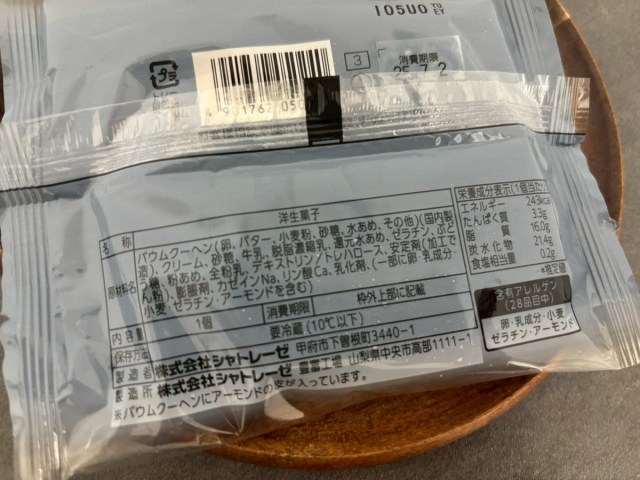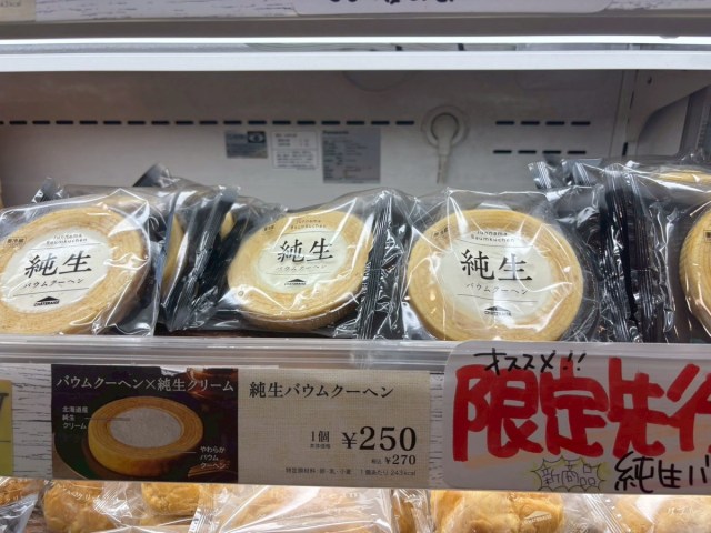 ただ、店内の商品ポップから、1つ270円ということ、北海道産の純生クリームを使用していること、バウムクーヘンがやわらかいということはわかった。