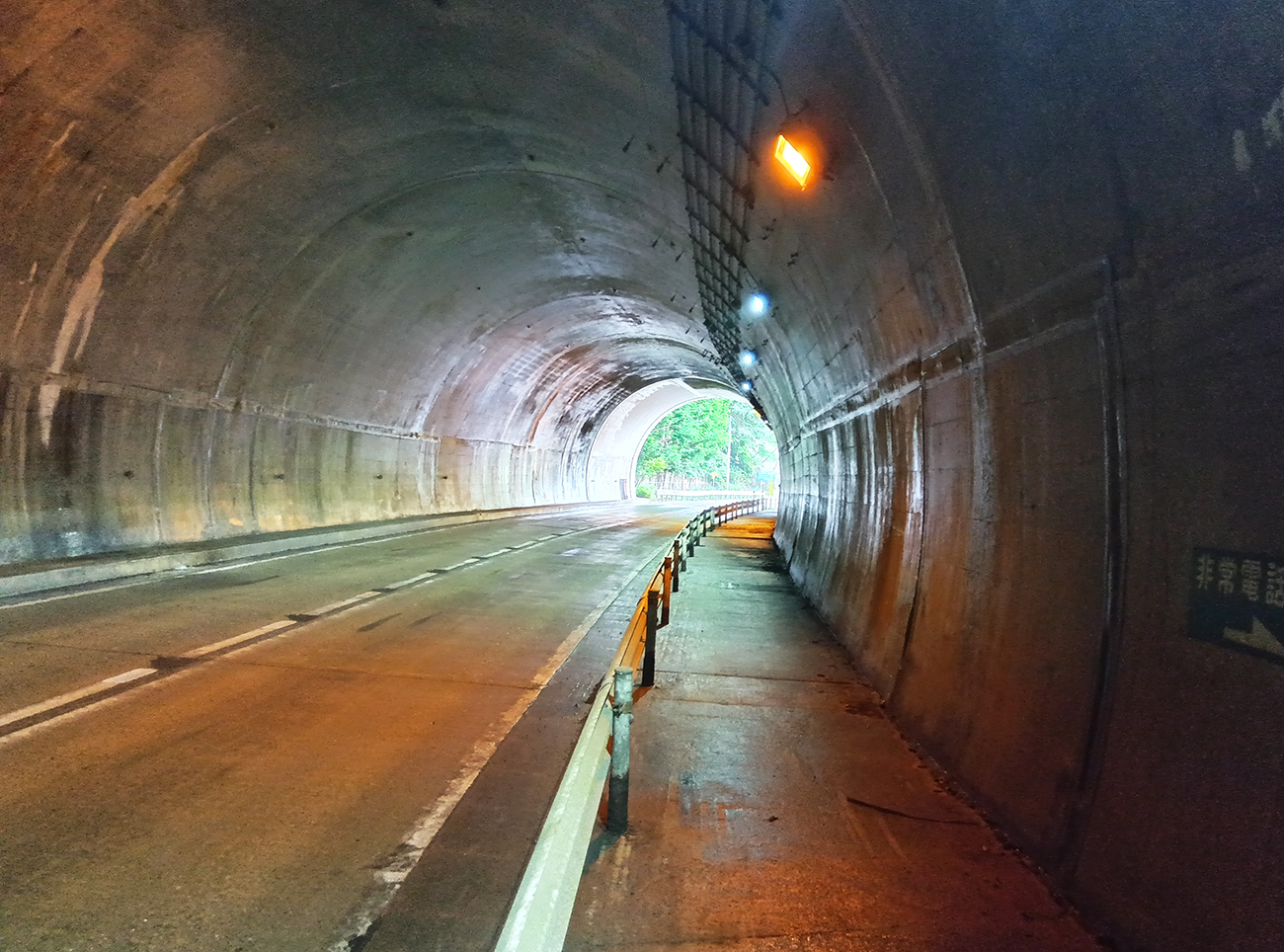ぼんやり大きくなっていく不安を現わすように、進めば進むほど暗闇も広がっていく。ぼんやりした電灯はその闇を点々としか照らしてなくて、その薄暗さの中に浮かび上がる「非常電話まで○○m」の看板が不気味に映える。ヤバイかもしれない……そう思ったのは大分進んでしまってからだった。