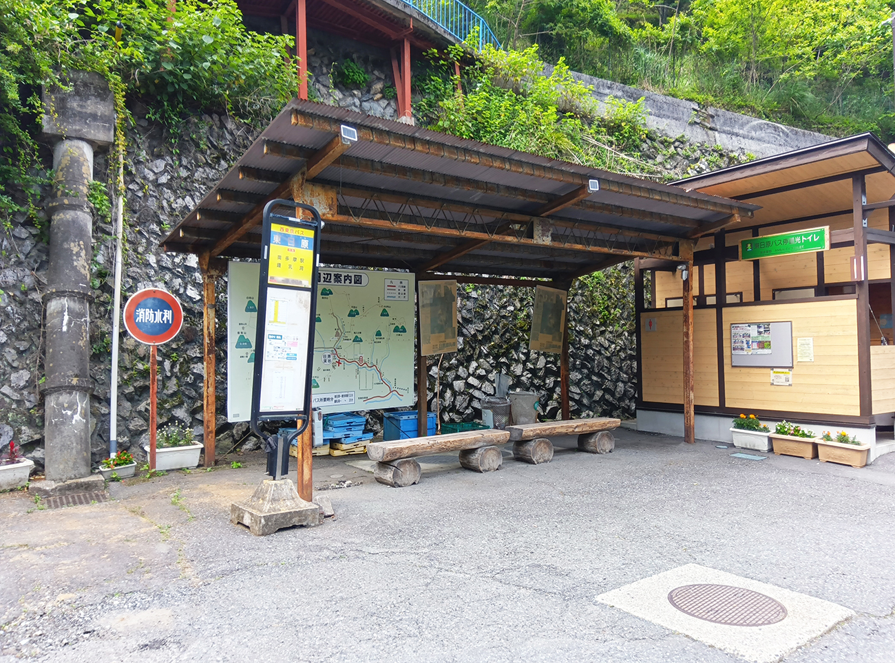 ちょっとした『ひぐらしのなく頃に』みを満喫して、富竹ジロウばりに写真を撮り歩きしていたところ、集落の端のバス停「東日原」にたどり着いた。