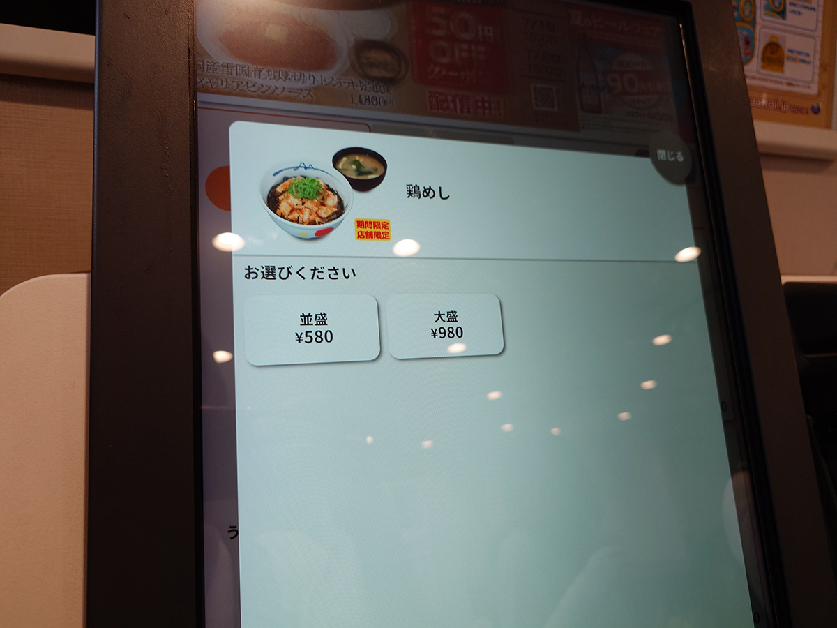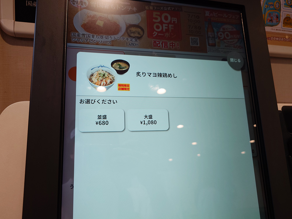 ノーマルは……ちょ、待てよ。580円の並から、大盛にすると一気に980円になるもよう。この上昇幅は圧倒的だ……。しかし今日は2種類食べねばならぬので、並を選択。