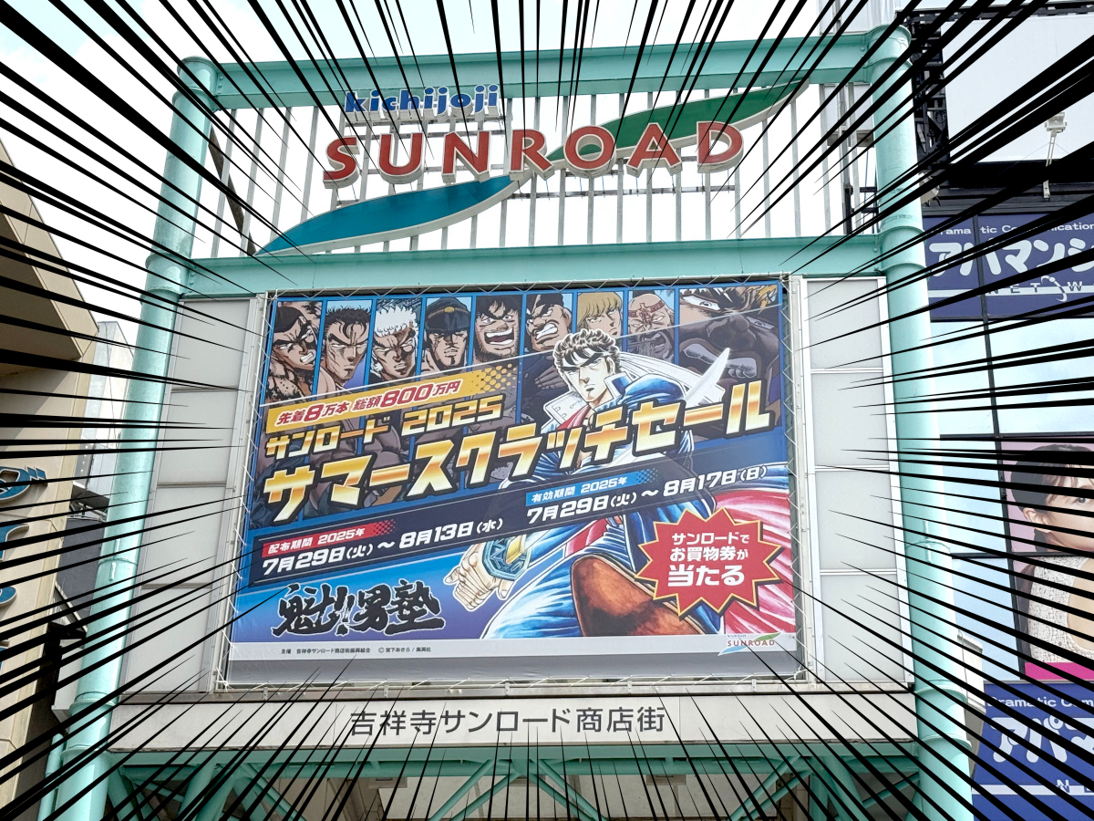 なんと吉祥寺の商店街・吉祥寺サンロードが「サンロード2025サマースクラッチセール」のメインビジュアルに「魁!! 男塾」を採用していたのである! というか、なんだよそのセンス!! どうかしてるぜサンロード!