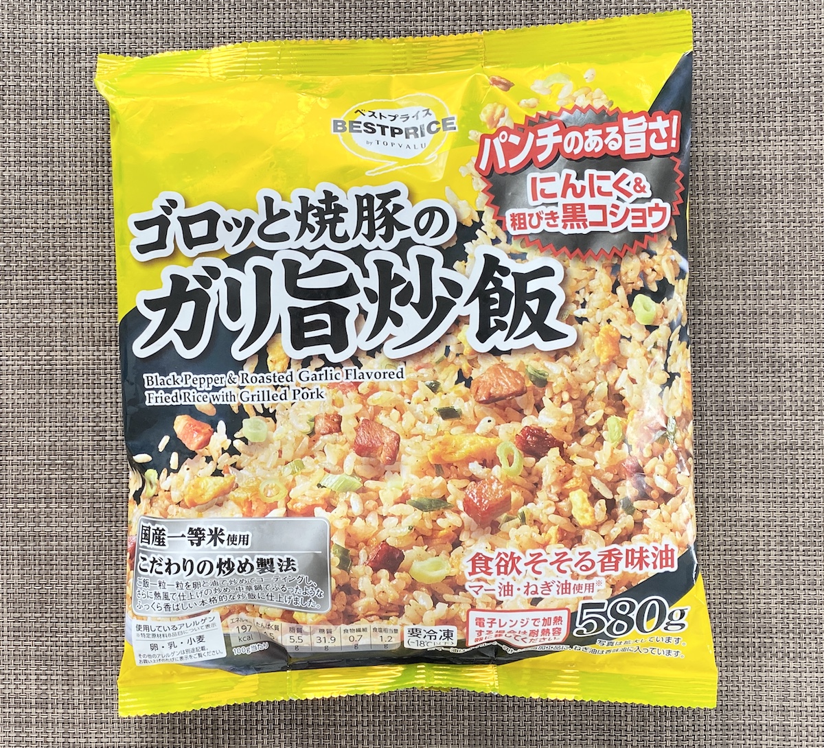 なにしろ、視界に飛び込んできたのはトップバリュの「ゴロッと焼豚のガリ旨炒飯」。焼豚と炒飯だけでも十分ウマいのに、そこにガーリックをぶっこんで黒コショウで味付けなんて……いくらなんでも犯罪的すぎるだろ!!