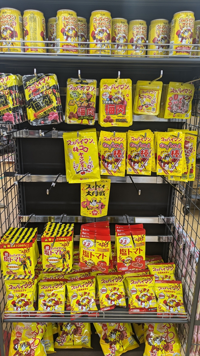 何かと思えば、あの『スッパイマン』のコラボ商品で棚が一面覆い尽くされていたのだ!