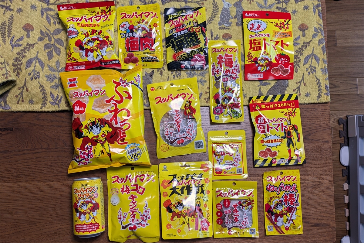 14種類でも十分多過ぎると思うのだが、どうやらすでに売り切れて手に入らなかった商品もあるらしい。ダイソーとスッパイマン、ただならぬ関係を感じるな。
