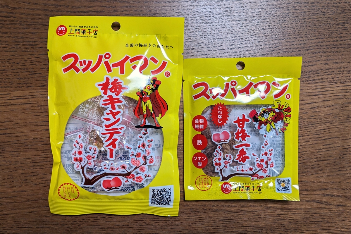 スッパイマンといえば、コレ! という看板商品が、『スッパイマン梅キャンディー』と『スッパイマン梅一番』だ。