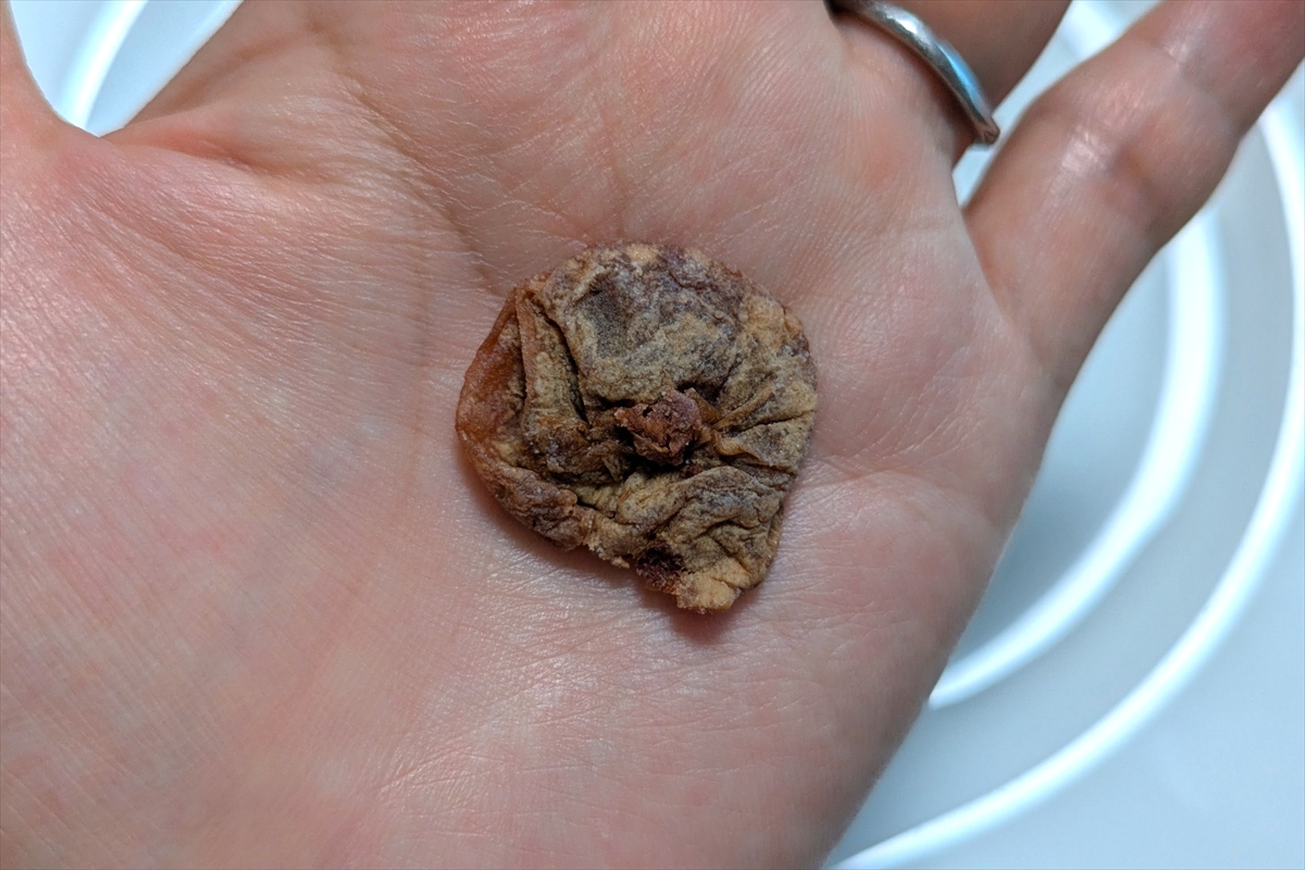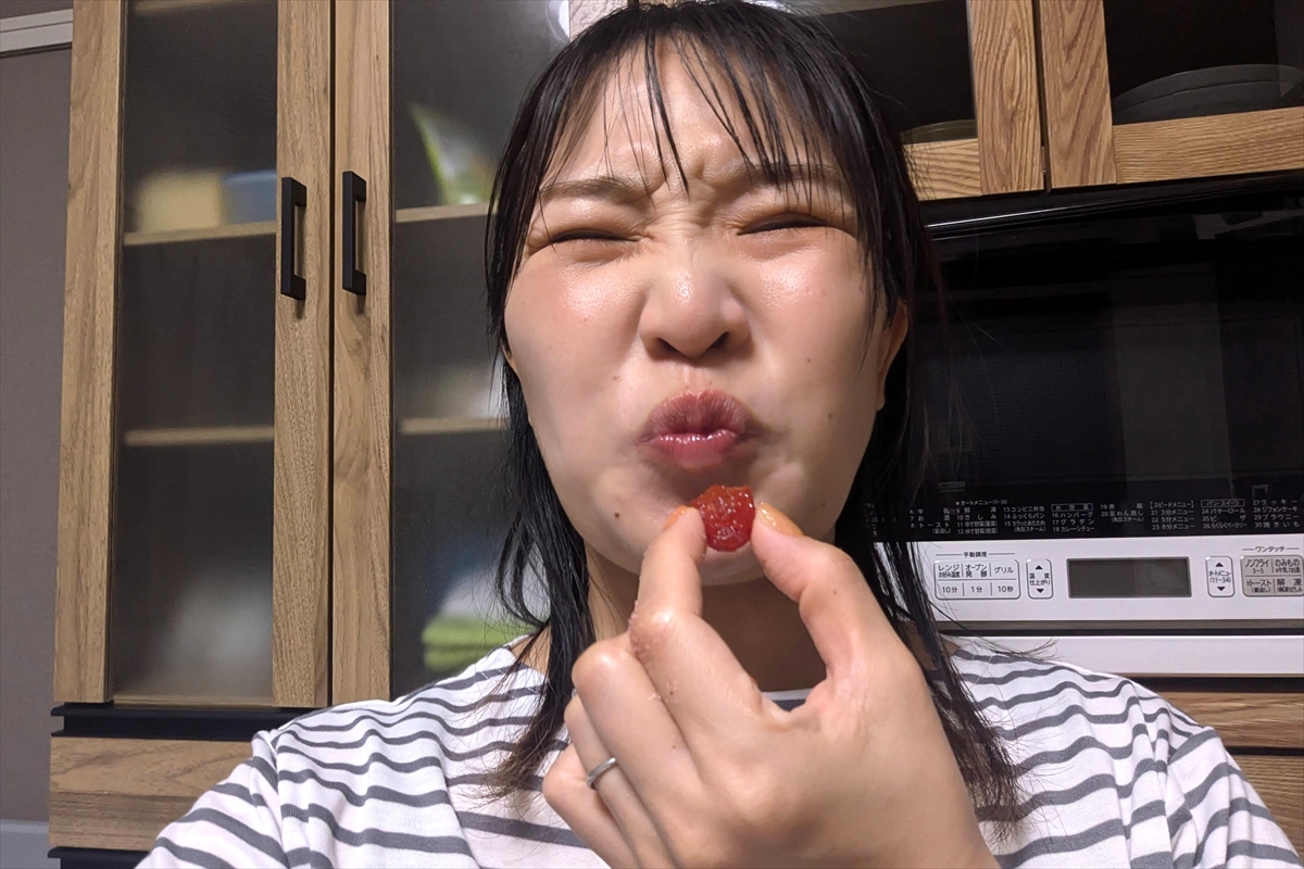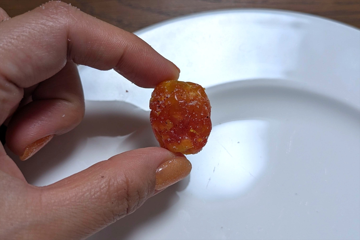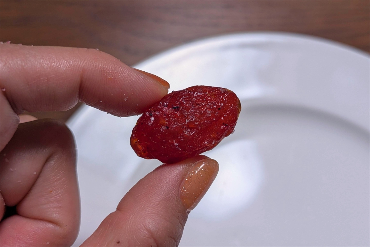 甘いドライトマトの砂糖漬けに、わずかに酸味がつけられているような感じ。梅の味はほとんどしないけど、ドライトマトとしては普通に美味しいじゃん。