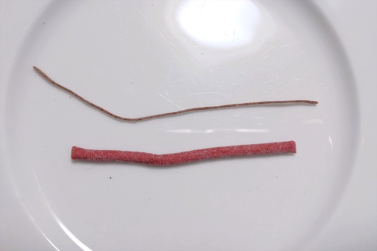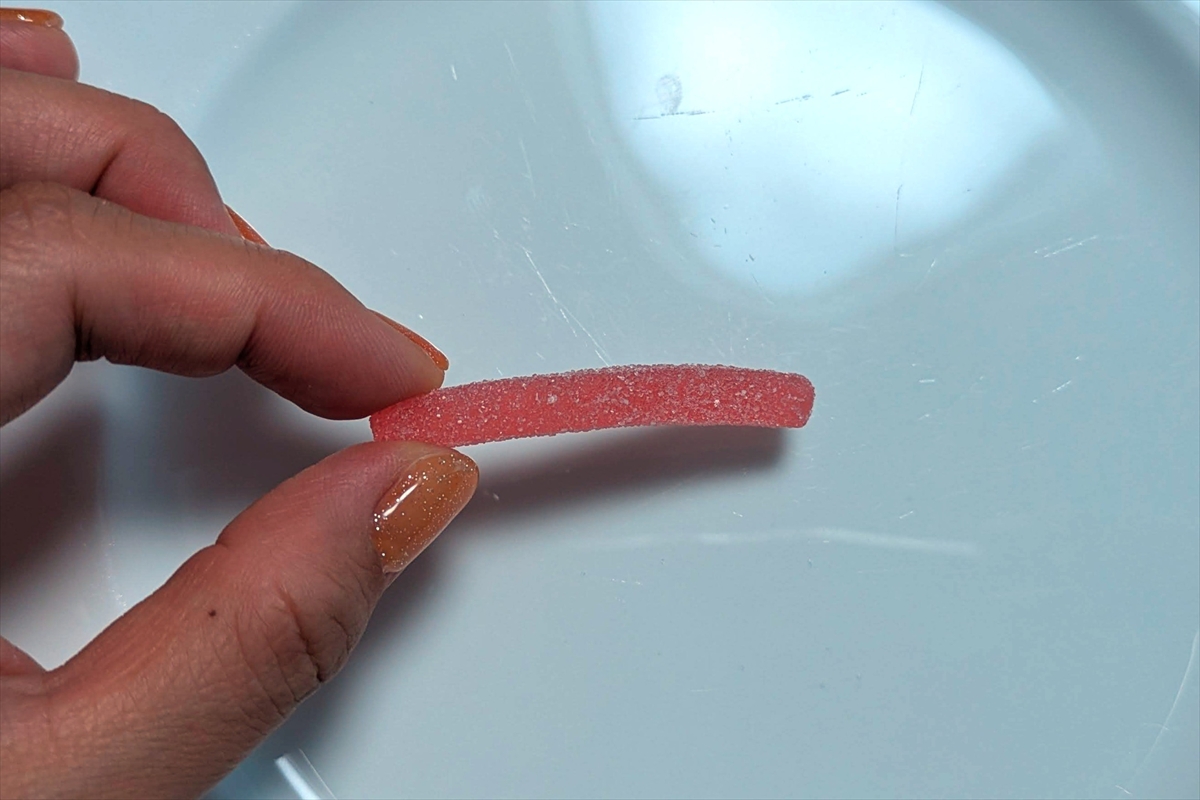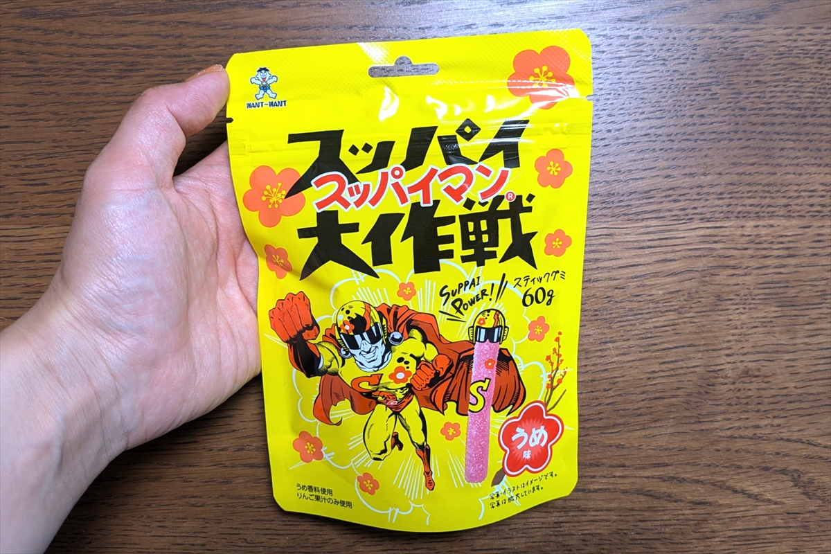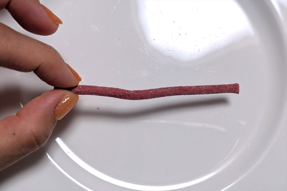 口に入れた時の甘さこそは似ているけど、スッパイマンというよりは棒状のねり梅。すっぱさと塩味が強い。だがそれでいて、食感はこれまでにないもので面白い。