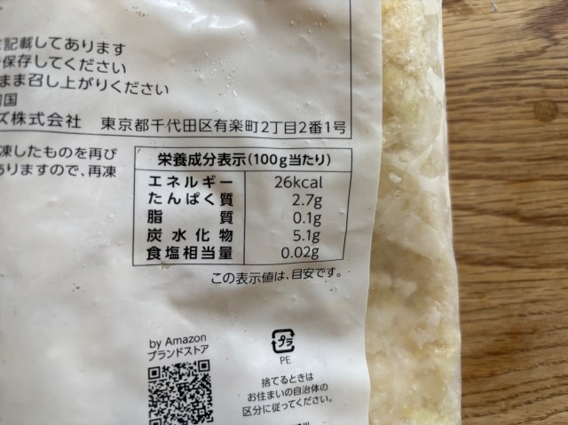 今回はAmazonからの提供で冷凍の「by Amazon カリフラワーライス 1kg」を入手した。