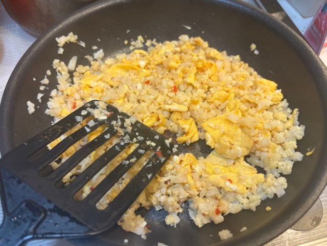 カリフラワーライスを炒めて味をつけるので、カリフラワーの香りも気になりづらい。