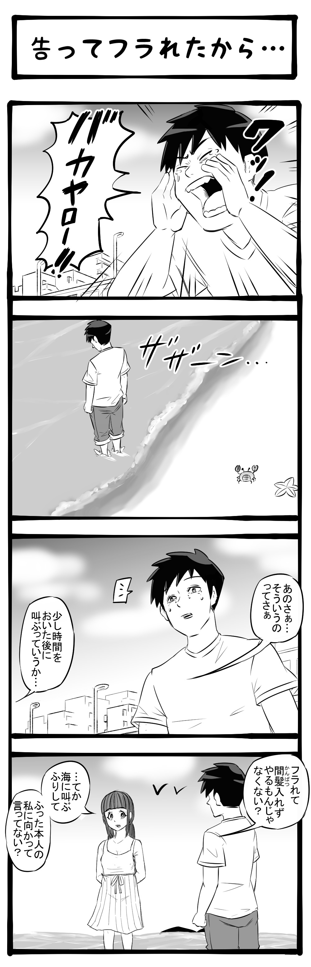 心の傷も波で洗い流せ! 絶叫の失恋男! 四コマサボタージュBYD第144回「告ってフラれたから…」