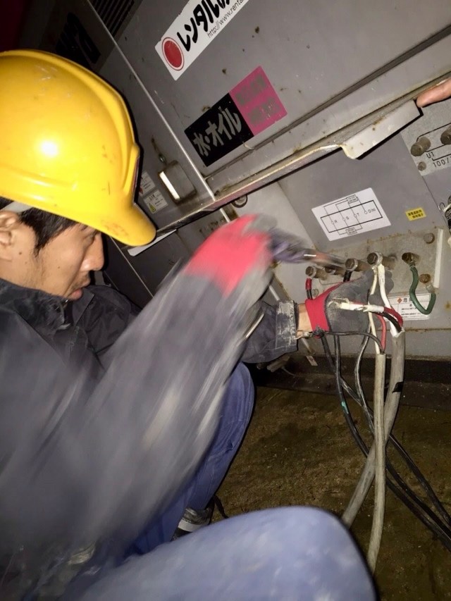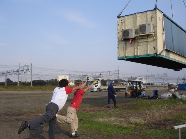 仕事を終えたら今度は自分たちの部屋(コンテナハウス)の整理。翌朝には部屋がそのままトラックに積まれるため、テレビや冷蔵庫が倒れないように固定し、それこそコンテナに取り付けていたテレビ用のアンテナやケーブル類も回収する。