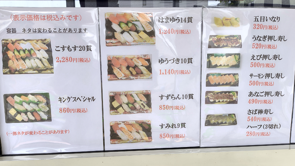 参考リンク:スシロー ToGoメニュー(PDF)、小僧寿し