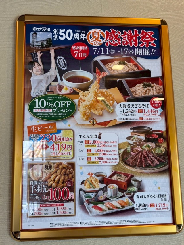 実はこのサガミ、2025年7月で創業50周年を迎えるらしく、2025年7月11日から17日までの7日間限定で「夏の感謝祭」が開催されるという情報をキャッチ。今回は特別に、感謝祭の内容を一足先に体験させてもらえることに!