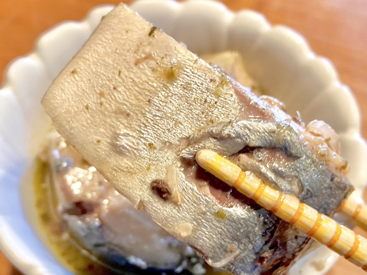 そのため、次は鯖の水煮にオリーブオイルをかけて味を確かめてみることにした。使用したのは、新潟県のローカルスーパー「原信」で売っていた鯖の水煮缶。