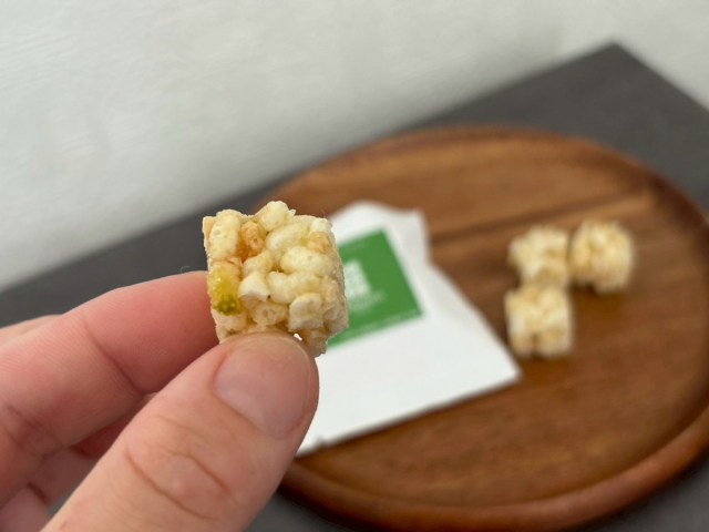 ジェラート自体は濃厚で、しっかりおいしい。その中に練り込まれているおこしが、ポン菓子のようにふわっとした食感で、ナッツのカリッと感とともに存在感を放っている。