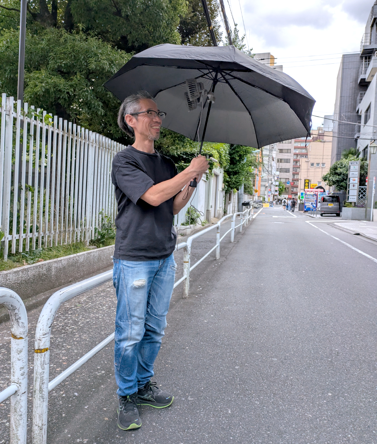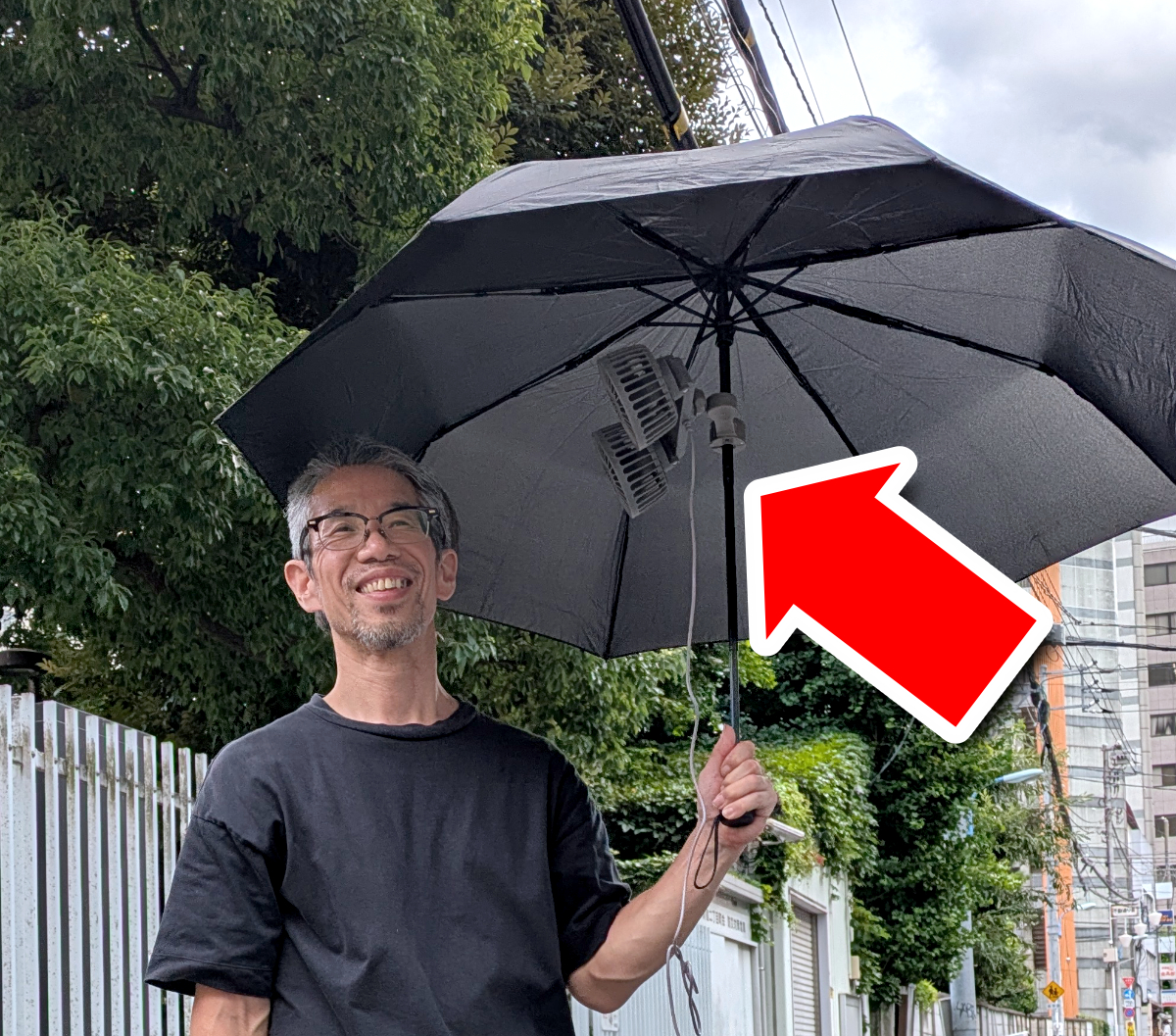 ファン付き日傘を持って屋外に出てみると……お! これめっちゃイイ!