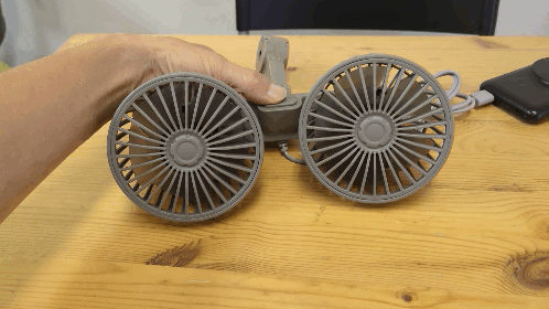 スイッチを入れてみると、弱でも結構な風量だ。座席のヘッドレストに装着して風を送れば、後部座席にもしっかりと冷たい空気を送ることができるだろう。