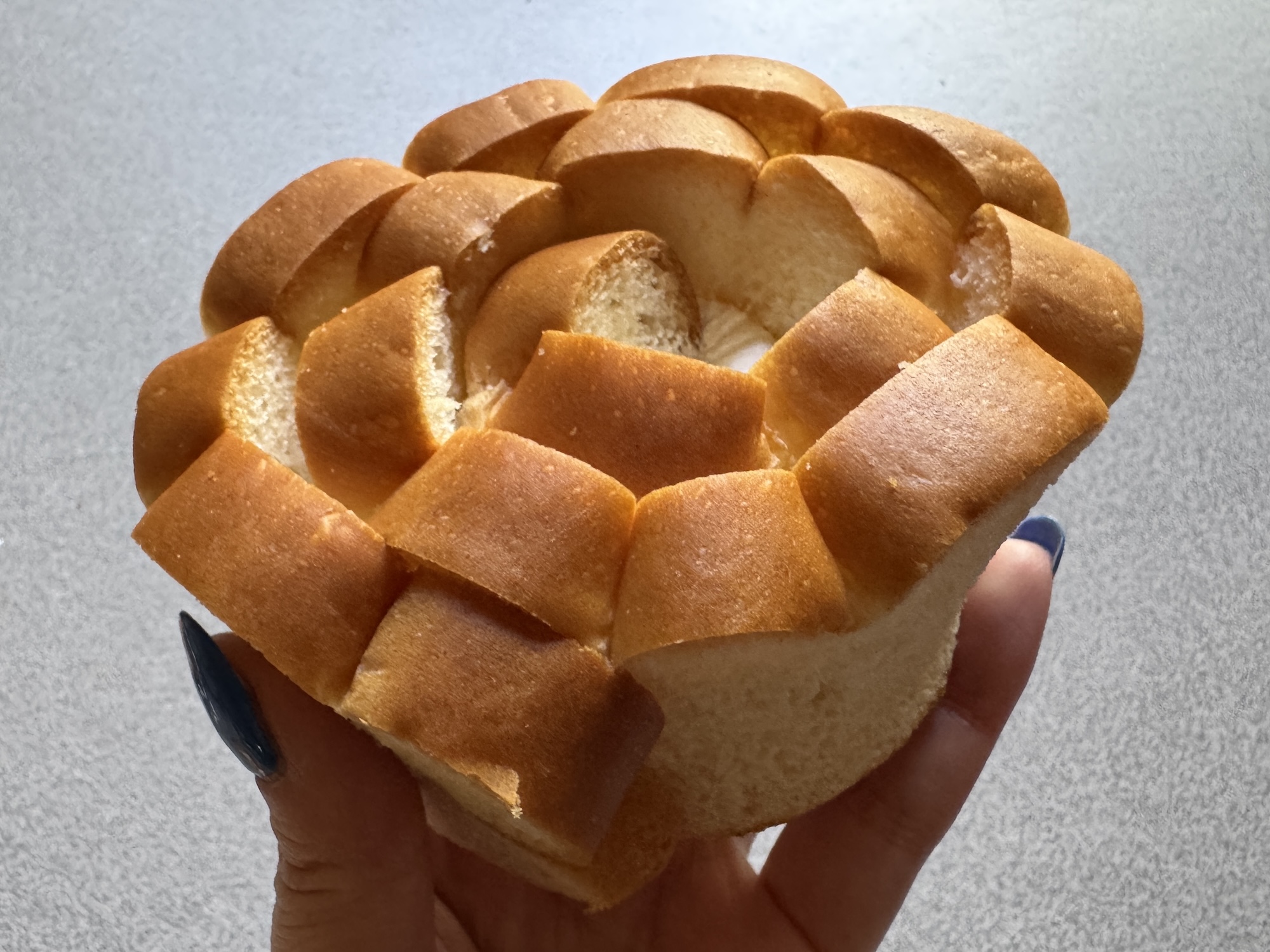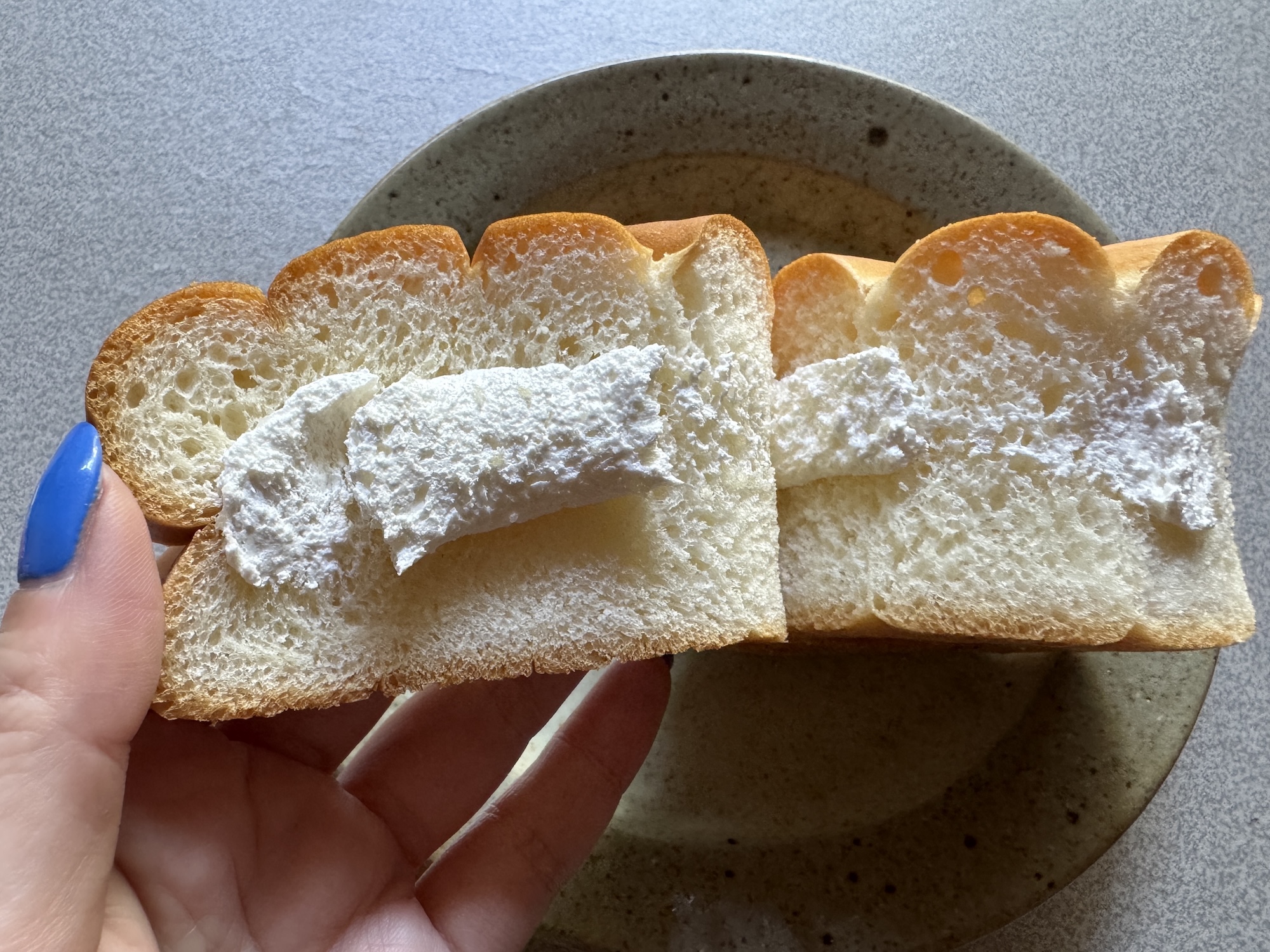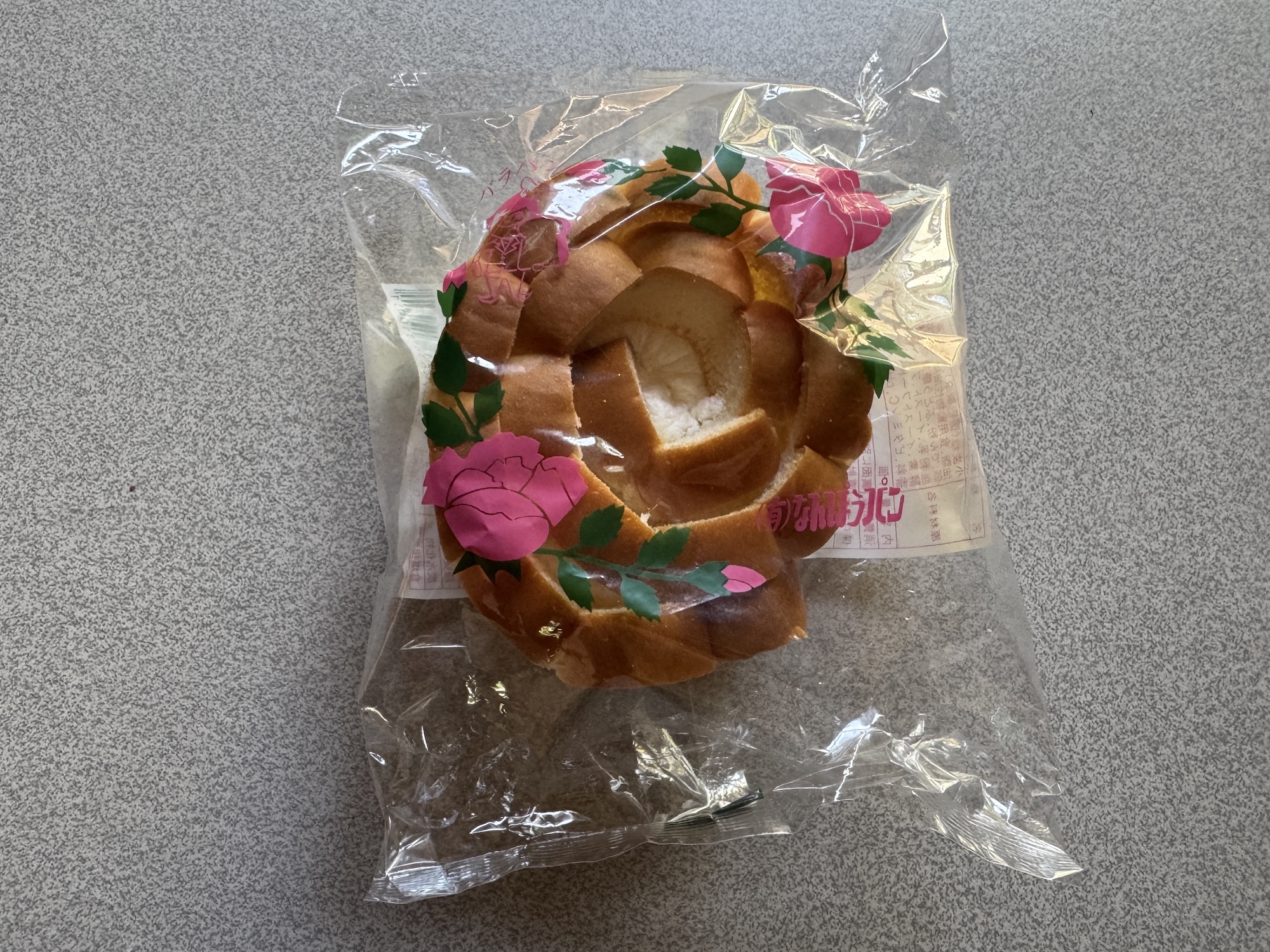ご覧のとおり、バラっぽい見た目が特徴だ。要するに薄くて長い食パンを巻いただけなのだが、これがどうして、なかなか楽しい。甘すぎないクリームと甘すぎないパンが織りなす優雅なハーモニー。