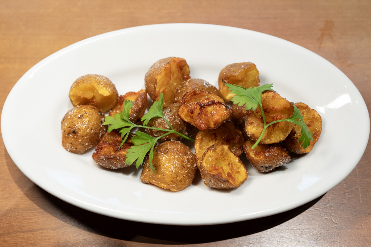 ポテトの表面のパリッと感。しかし中はしっとり。ゴリゴリにかけられた粒の大きい塩は、味だけでなく食感面でも機能している! 粒子の細かい塩では、このウマさには至らないだろう。塩のセレクトのIQが高い。